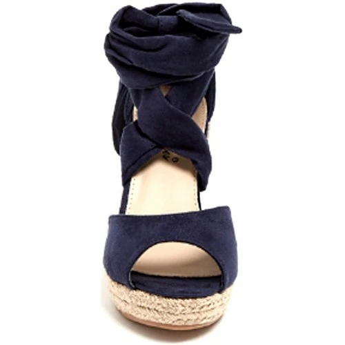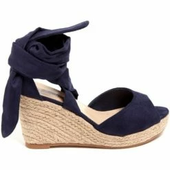 Espadrilles compensées à plateforme, drapées aux chevilles avec bouts ouverts.