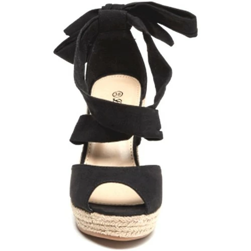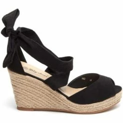 Espadrilles compensées à plateforme, drapées aux chevilles avec bouts ouverts.