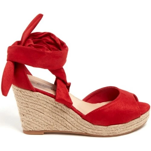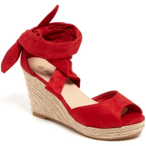 Espadrilles compensées à plateforme, drapées aux chevilles avec bouts ouverts.