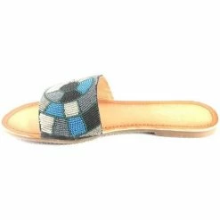 Ces sandales jouent la carte ethnique avec leur dessus décoré d’un assemblage de perles multicolores aux motifs variés.