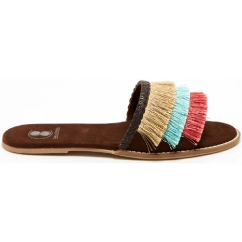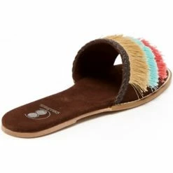 Superbes sandales en 100% suédine et une tresse cuir ornées de franges de plusieurs couleurs et d’une tresse en cuir.