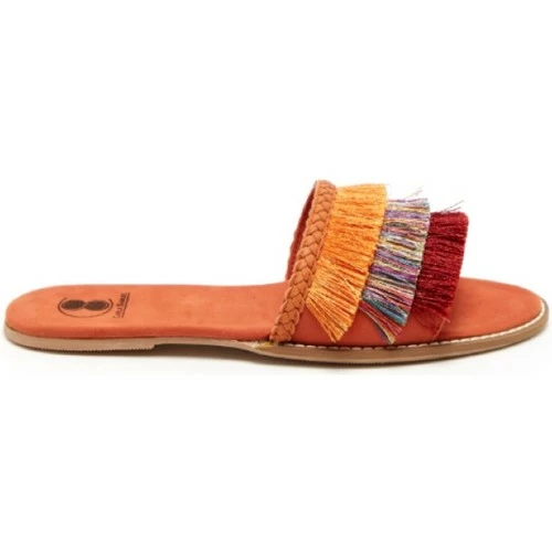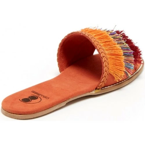 Superbes sandales en 100% suédine et une tresse cuir ornées de franges de plusieurs couleurs et d’une tresse en cuir.
