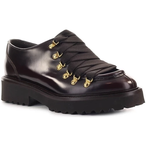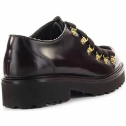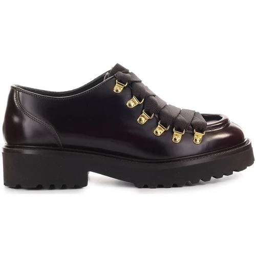 Chaussures à lacets derby de Doucal’s en cuir bordeaux avec bord accentué, fermeture avec maxi lacets et œillets en métal doré. Semelle en caoutchouc, hauteur 3,5 cm.