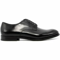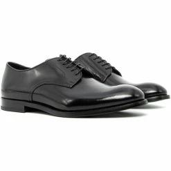 Modèle derby à lacets avec tige lisse, élégant avec semelle en cuir. Pointe ronde. Fabriqué en Italie.