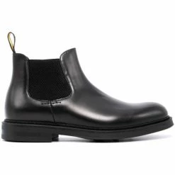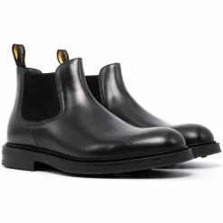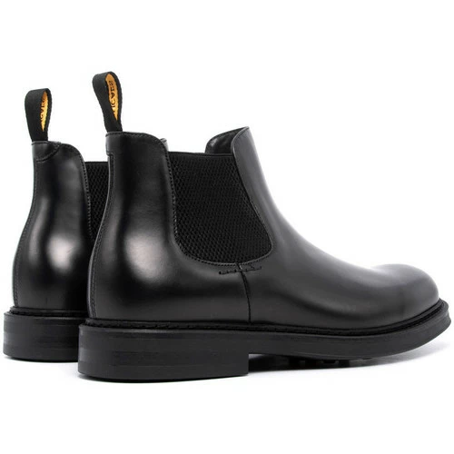 Beatles en cuir de veau noir, avec tige sans couture et formes arrondies. Traitement Blake