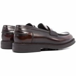 Mocassin Penny en veau vieilli marron brillant, avec surpiqûres bol en relief. Semelle en caoutchouc ultraléger. Traitement Blake